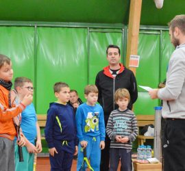 W sobotę 26 listopada zorganizowany został turniej dla dzieci trenujących na poziomie czerwonym. W zawodach wzięło udział 8 zawodników, podzielonych na dwie grupy, w których rywalizacja toczyła się w formule “każdy z każdym” do dwóch wygranych super tie break’ów. Po rundzie zasadniczej z kompletem zwycięstw swoje grupy wygrali Gracjan Siwek oraz Filip Kowalewski, i tym […]