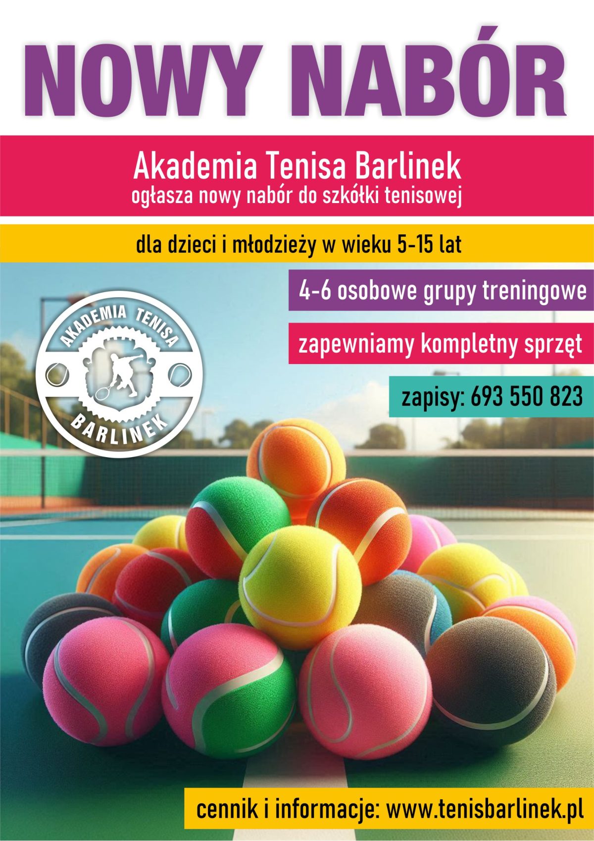 Zapraszamy dzieci i młodzież w wieku 5-15 lat do dołączenia do naszej szkółki! Zajęcia będą odbywać się w grupach dostosowanych do wieku i umiejętności uczestników. To doskonała okazja, aby rozpocząć swoją przygodę z tenisem pod okiem naszych trenerów. Niezależnie od poziomu zaawansowania 🙂
